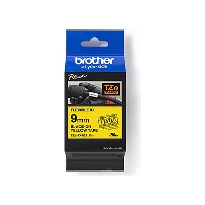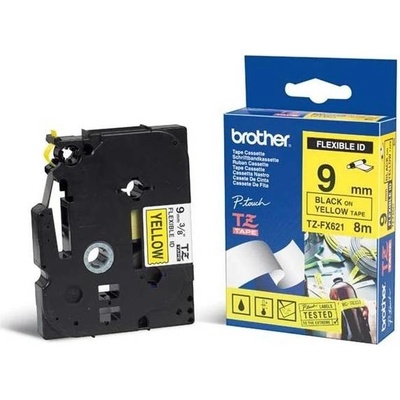 Originální páska Brother TZe-FX621, 9 mm, flexibilní žlutá páska / černý tisk, výtěžnost 8 m. Pro tiskárny Brother P-touch 18R, PT-18R, P-touch 300, PT-300, P-touch 550,...