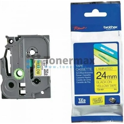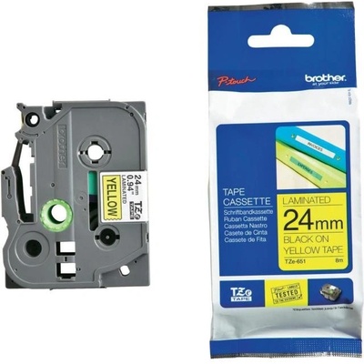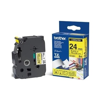 Brother TZE-651 - originální páska do tiskárny štítků, Brother, TZE-651, černý tisk/žlutý podklad, laminovaná, 8m, 24mmBrother TZE-651 - originální páska do tiskárny štítků,...