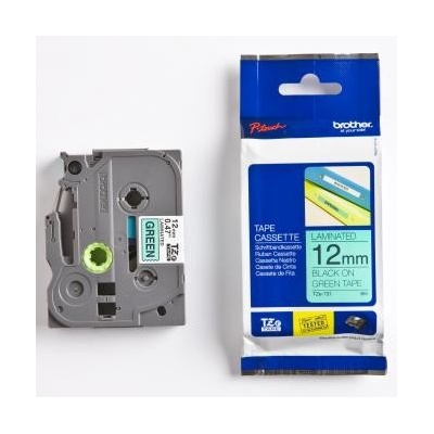 Páska Brother TZ, 12mm (TZ-731) zelená, černý tisk, laminovaná, 8m (TZe-731) Standardní Brother TZ pásky pro tisk odolných štítků. Štítky jsou velice odolné, vhodné na jakékoliv použití i do venkovního prostředí. Délka pásky v...