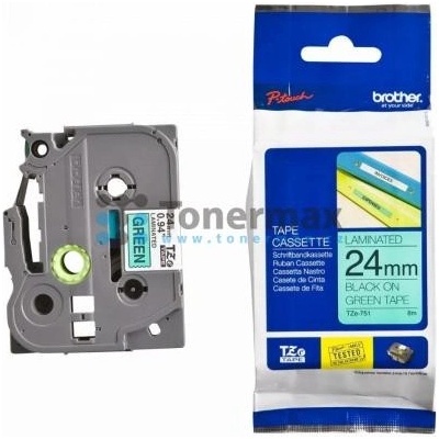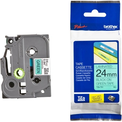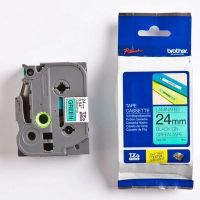 Brother TZE-751 - originální páska do tiskárny štítků, Brother, TZE-751, černý tisk/zelený podklad, laminovaná, 8m, 24mmBrother TZE-751 - originální páska do tiskárny štítků, Brother, TZE-751, černý tisk/zelený podklad, laminovaná, 8m, 24mm