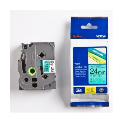 Páska Brother TZ, 24mm (TZ-751) zelená, černý tisk, laminovaná, 8m (TZe-751) Standardní Brother TZ pásky pro tisk odolných štítků. Štítky jsou velice odolné, vhodné na jakékoliv použití i do venkovního prostředí. Délka pásky v...