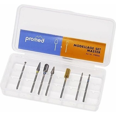 Kompletní profesionální sada fréz Promed pro každý typ modeláže nehtů. Nástavce mají standardní průměr 2,32mm -2,35 mm. V této sadě najdete: nástavec č.198410 - Kulatá...