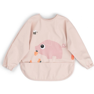 Bryndáček s rukávy Tento roztomilý bryndáček hezké barvy má roztomilý motiv prasátka Pigee. Bryndáček zajišťuje čistotu svým voděodolným povrchem a chrání oblečení před politím...
