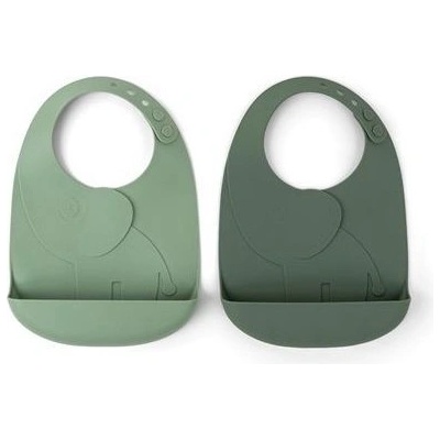 Set bryndáčků Elphee vykukuje z praktického silikonového bryndáčku - připravený zachytit každý drobeček. Oba bryndáčky jsou voděodolné, snadno se otírají nebo umývají v myčce....