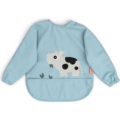 Bryndáček s rukávy Tento roztomilý bryndáček hezké barvy má roztomilý motiv kravičky Dotti. Bryndáček zajišťuje čistotu svým voděodolným povrchem a chrání oblečení před politím...