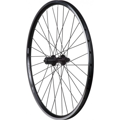 Zadní kolo Dvojstěnný, vložkovaný ráfek 622x19, černý, 32 děr Náboj diskový, 6 děr s rychloupínákem pro kazety 8/9 rychlostí Černý výplet Hmotnost 1390g