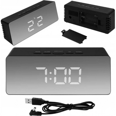 Iso Trade Multifunkční zrcadlové hodiny s budíkem a teploměrem, černé 3v1 - hodiny, budík a zrcadlo! Vše v jednom malém zařízení. Budík je vybaven předním zrcátkem...