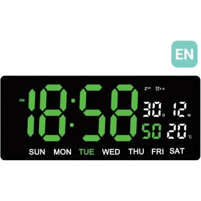 JVD Digitální černé nástěnné hodiny s LED zelenými číslicemi JVD DH3604.2 Nové obdélníkové hodiny v černém provedení se třemi variantami čísel lze pověsit na zeď i postavit na...