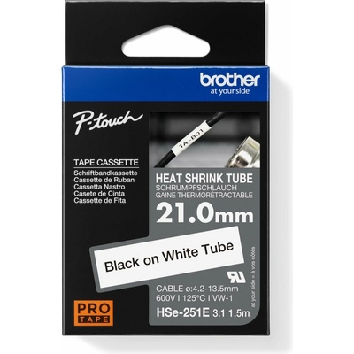 HSE-251E - NOVÁ originální bužírka, smrštitelnost 3:1, šířka 21,0 mm, černý tisk na bílé, délka 1,5 m z řady PRO Tape (design černo-modrého balení) •Nutné si stáhnout a...