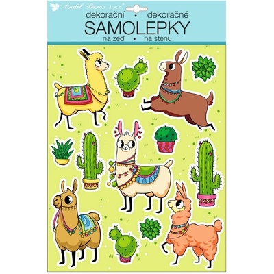 Samolepky na zeď barevné lamy s glitry 35 x 27 cm