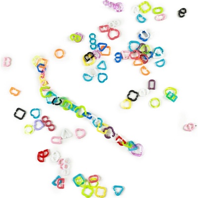 Plastová céčka v sáčku. V balení je cca 130 kusů.