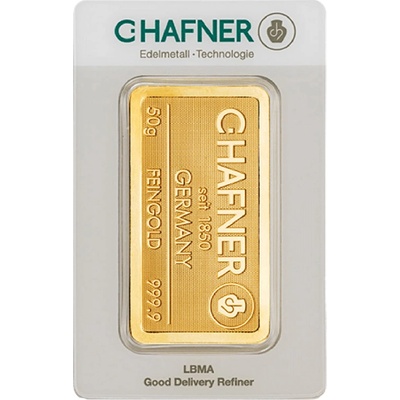 C. Hafner - 50g - zlatý investiční slitek Materiál: zlato Ryzost: 999,9/1000 Hmotnost: 50g Mincovna: C. Hafner Země původu: Německo Dodáváno: v blistru s certifikátem...