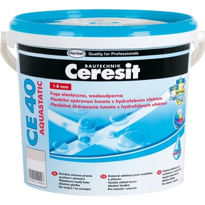 - CERESIT® CE 40 AQUASTATIC je flexibilní spárovací hmota je obzvlášť vhodná na spárování obkladů a dlažby z keramiky, včetně gresové (nenasákavá), skla, mozaiky, přírodního...