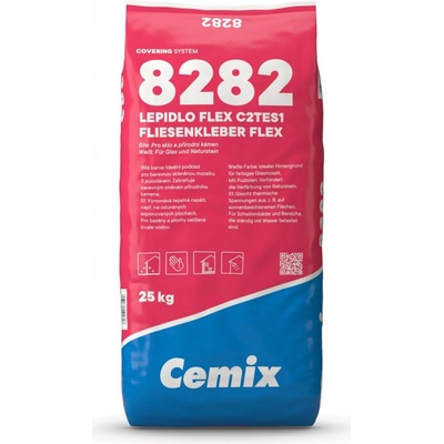 Flexibilní cementové lepidlo C2TS1 pro lepení keramických obkladových prvků. Cemix Lepidlo FLEX C2TS1 8285 je vysoce kvalitní flexibilní cementové lepidlo určené pro lepení všech typů keramických obkladů a dlažeb, včetně slinutých a málo nasákavých. Díky příčné...