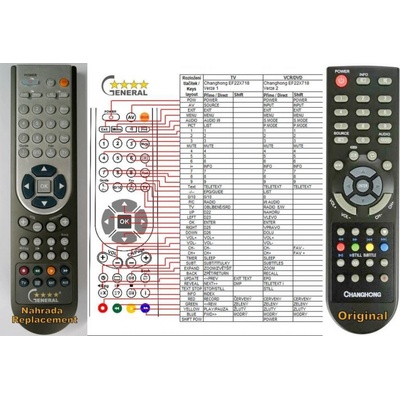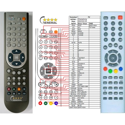 Duplikát ovladače Changhong DVBT335MCZ Ovladač je dodáván ve verzi NEUNIVERZÁLNÍHO ovladače General SAT-TV (zobrazen vlevo!). Bude nastaven pro Váš přístroj a stačí tedy vložit...