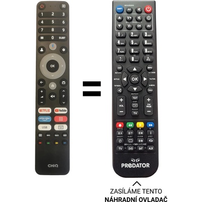 Náhradní dálkový ovladač CHiQ L32H8CG, L40G7B, L40H7G, L32M8TG - 100% náhrada 1:1 za originální dálkový ovladač. Dokonalá 1:1 kopie navržená a vyrobená naší firmou – má všechny...