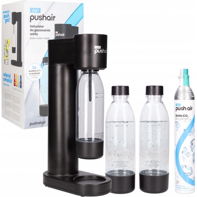 Výrobník sody Dafi PushAir + 2 x láhev 0,7 L + CO2 bombička sada černá Užijte si dokonale perlivou vodu kdykoliv – bez elektřiny, zbytečných výdajů a PET lahví. Výrobník Sody...