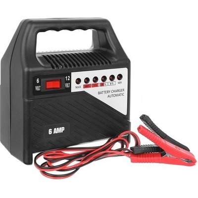 Přenosná automatická nabíječka akumulátoru 6/12V 6A, napájení 230V. Pro akumulátory 6/12V 15-60Ah, max. nabíjecí proud 6A. Baleno v barevné krabici. Homologace GS/TUV. Tato nabíječka je určena k nabíjení bezúdržbových olověných akumulátorů o kapacitě 16-60Ah. Nabíječka...