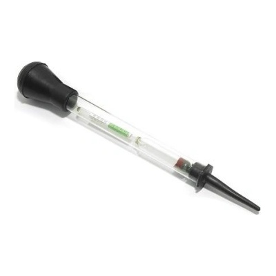 Skleněný hustoměr s balónkem, nasávací trubicí a vnitřním plovákem, určený k měření náplně chladiče automobilu. Pomocí tohoto hustoměru lze měřit kapaliny na bázi glykolu i...