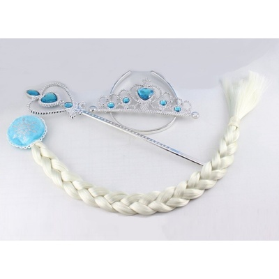 Nepostradatelné doplňky pro malé princezny! Sada obsahuje čelenku (korunku) a magickou hůlku s modrými "drahokamy", tyrkysové korunovační rukavice s třpytkovými vzory a cop na...