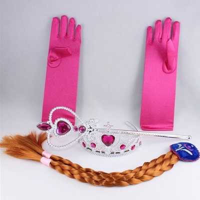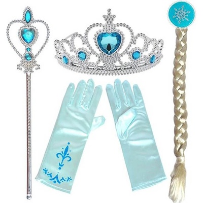Sada Frozen 4ks set Frozen Elsa 4ks čelenka hůlka rukavice cop tyrkysové rukavice