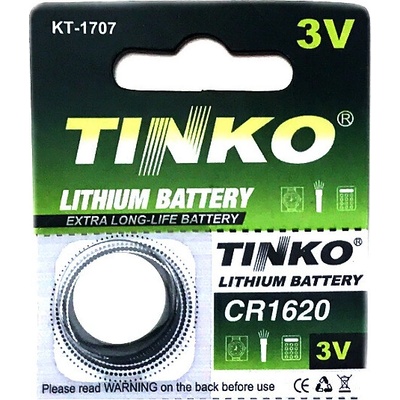 - Knoflíková baterie Tinko CR1620 - Napětí: 3V - Typ: lithiová - Rozměr: 16x2 mm Cena za 1ks baterie.