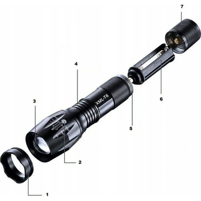 Vynikající baterka s vysokým jasem díky LED diodě CREE XM-L T6. Díky této LED diodě je spotřeba energie pouze 1/20 normální lampy. Životnost lampy činí zhruba 10 000 hodin....