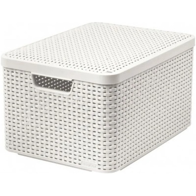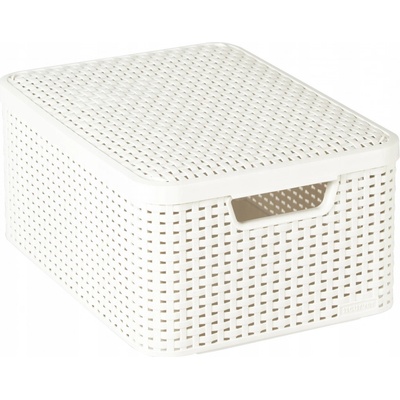 Úložný box RATTAN Style L s víkem značky Curver. - stohovatelný - 2 úchyty - otvory ve výpletu zajištují cirkulaci vzduchu - barva: krémová - materiál: polyratan dostupné i v dalších barvách: hnědá tmavá mocha