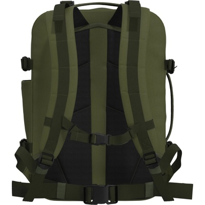 zelený kabinový batoh 36l ve vojenském stylu s odolnými YKK zipy a možností uzamčení, vnějšími poutky ve stylu taktického MOLLE systému a štítkem s unikátním kódem, který umožní dohledat majitele zavazadla v případě jeho ztráty