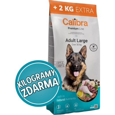 CALIBRA Dog Premium Line Adult Large 12kg Granule pro psy Specifikace produktu - kompletní suché krmivo pro dospělé psy - určeno pro velká plemena (nad 30 kg) - bez obsahu pšenice, pšeničného lepku, sóji, přidaných barviv, umělých konzervantů a GMO - bílkoviny...