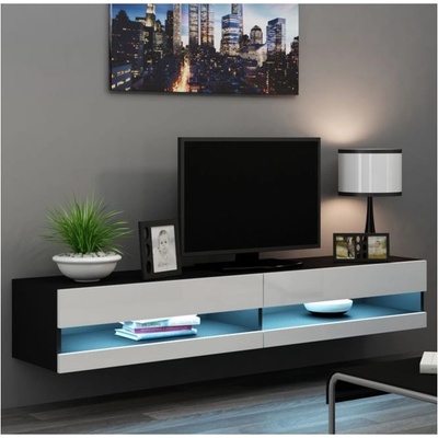 Cama RTV VIGO180 c/c televizní stolek/nábytek k multimediálnímu vybavení Vrchní barva: Černá Dodatečné informace: Zavěšená skříňMůžete si koupit osvětlení skříně LED.Dvě komory uvnitřFotografie vnitřku skříně ukazují bílou barvu a jsou pouze ilustračníNábytek pro...