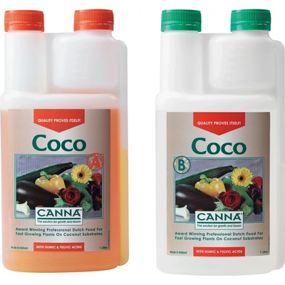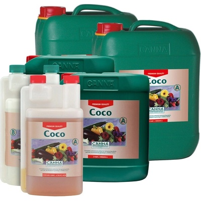 Canna Coco (A+B) - Profesionální živný preparát. Coco nutrient je kompletní profesionální živný preparát pro rostliny obsahující všechny nezbytné prvky pro optimální růst a květ. Coco se používá pro fázi růstu a květu, pokud je používán v kombinaci s kvalitním...