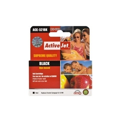 Cartridge Canon CLI-521BK black (10ml) bez čipu ACTIVEJET Alternativní černá inkoustová cartridge bez čipu pro Canon PIXMA: - IP3600, IP3680, IP4600, IP4680, IP4700, IP4760,...