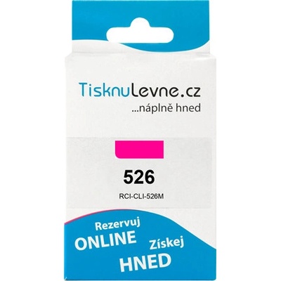 Purpurový zásobník TisknuLevne.cz (kompatibilní s Canon CLI-526M). Vytiskne cca 437 stran A4 při pokrytí 5%.