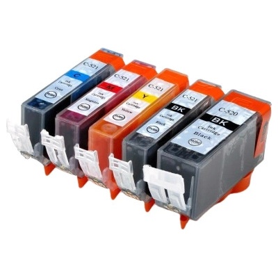Sada Canon PGI-520 / CLI-521 (PGI520, CLI521) PIXMA - kompatibilní inkoustové náplně (cartridge) - Canon Sada 5ks alternativní inkoustových náplní nahrazující Canon PGI-520Bk,...