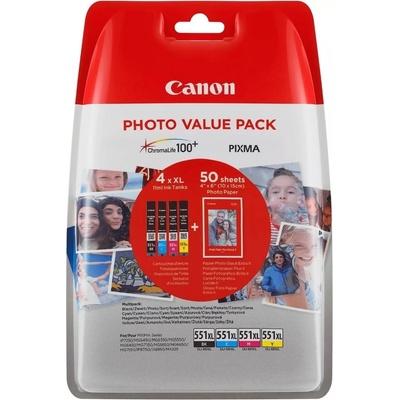 Canon sada inkoustů, CLI-551CMYBK, objem tiskové náplně 4×7ml, 6509B008, pro barevnou inkoustovou tiskárnu / kopírku Canon Pixma MG5450/MG6350/MX925/iP7250