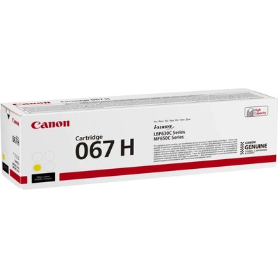 Originální toner Canon 067H, 5103C002, barva žlutá (yellow), výtěžnost 2350 stran A4 při 5% pokrytí. Pro tiskárny Canon i-SENSYS LBP631Cw, i-SENSYS LBP633Cdw, i-SENSYS MF651Cw, i-SENSYS MF655Cdw, i-SENSYS MF657Cdw