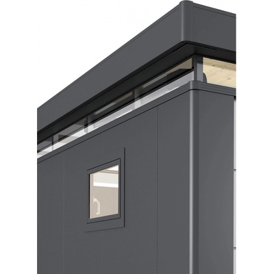 Celoobvodový pás oken pro domky na nářadí Biohort CasaNova k prosvětlení domku. Po instalaci tohoto celoobvodového pásu, posuvná funkce skleněných prvků již není k dispozici.