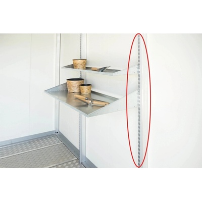 Regálové stojiny s práškovou úpravou, vhodné ke sklápěcímu stolu a závěsným konzolám. Instalace možná také dodatečně. Zatížitelnost 150 kg na stojinu.