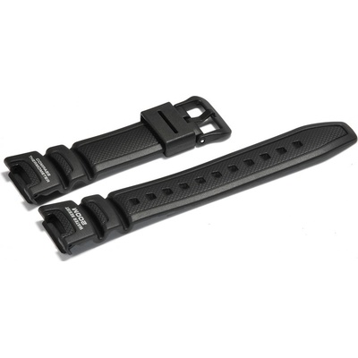 Plastový řemínek na hodinky CASIO má má černou barvu a plastovou černou sponu. Řemínek je určen na hodinky CASIO SGW-100-1V