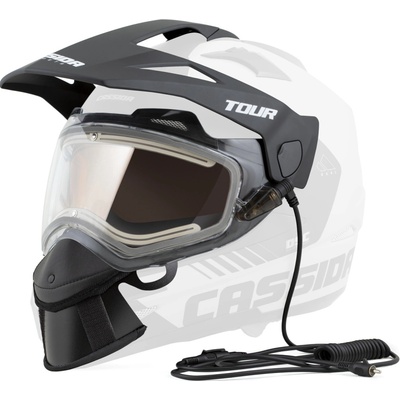 Náhradní kšilt rozměrově kompatibilní s elektricky vyhřívaným plexi pro přilby na motorku CASSIDA TOUR 1.0/1.1/2.0. Balení obsahuje jeden pár krycích víček uchycení mechanismu plexi.