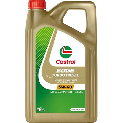 Motorový olej CASTROL 5W-40 EDGE Turbo Diesel Castrol EDGE Turbo Diesel je syntetický motorový olej s technologií TITANIUM FSTTM vhodný pro použití zejména v přeplňovaných naftových motorech. Jeho složení poskytuje maximální výkonnost a zároveň zajišťuje kompatibilitu...