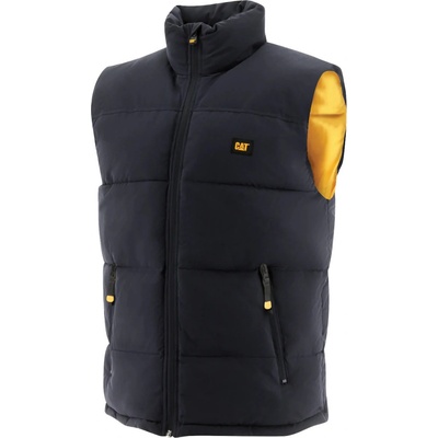 Vesta zateplená CATERPILLAR CLASSIC černá - luxusní zateplená vesta CAT, 380 g/m2, 65%Ba a 35% nylon s acrylovou úpravou, PES zateplení, logo CAT na gumovém štítku na srdci, žlutá PES podšívka, stojací límec, celozipové zapínání, dvě boční kapsy na zip s logy CAT na...