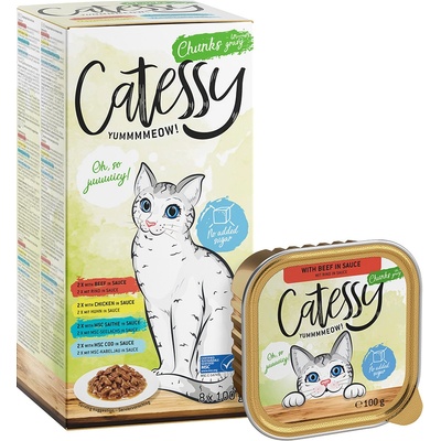 Šetření se tak stane zábavou i pro vaši kočku! Catessy vaši kočku rozmazluje šťavnatými masovými a rybími kousky v omáčce. Různé varianty nabízejí vše, co vy i vaše kočka od Catessy očekáváte: všechny důležité vitamíny a živiny taurin pro podporu silného srdce zinek...