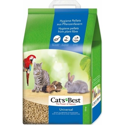 Pelety z čistě rostlinných vláken vhodné pro různá domácí zvířata jako např. kočky, králíky, křečky, činčily, fretky, morčata nebo různé druhy ptáků. Podestýlka Cats Best Univerzal dobře saje a přirozeně pohlcuje zápach.