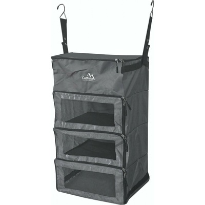 Lehký závěsný organizér s čtyřmi policemi na zip, ideální pro kempování a skladování drobností s jednoduchým zavěšením pomocí kovových háčků. Praktický závěsný organizér určený pro přehledné uložení vybavení ve stanu i na dalších místech, kde je potřeba udržet pořádek...