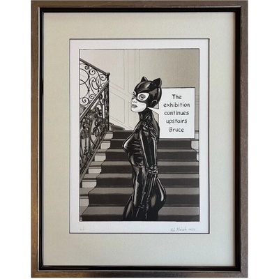 Autor: Ptáček PetrNázev díla: Catwoman Rozměr s rámem: 45.5x59.0 Rozměr obrázku: 35x49.6 Technika: grafika- litografie Original: ano Signováno: ano Sklo: Muzeální sklo - TruVue...