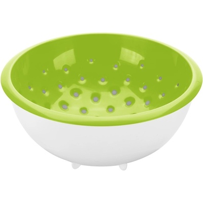 Obsah balení: - 1× miska a cedník 2v1 Technická specifikace: - Rozměry: 30 × 25 × 12 cm - Materiál: plast - Barva: bílo – zelená - Otočný systém - Cedník zůstává po...