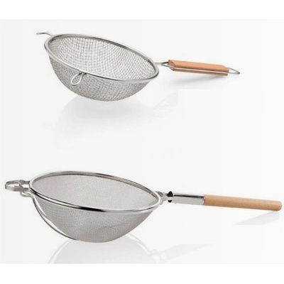 Cedník z chromniklové nerezové oceli 18/8 - 18/10 se hodí do velkých kuchyní. Dvojitě tkané síto. Rukojeť zpevněna dřevěnou výplní.Parametry: průměr cm: 30 cm,provedení: kulatá...