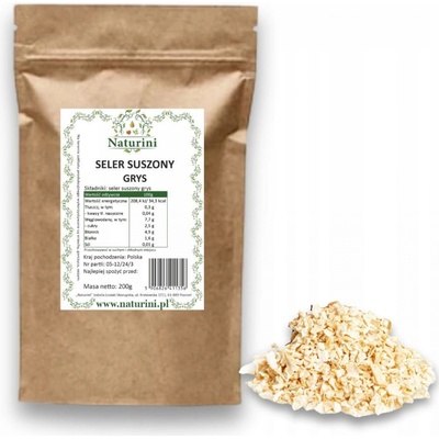 Celer kořen sušený mletý Alergen: produkt je alergen Vzhled a barva: mletý kořen krémové barvy Vůně a chuť: výrazné aroma Použití v kuchyni: do polévek, omáček, na pečení masa,...